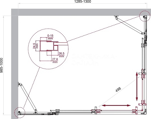- Душевой уголок прямоугольный.
