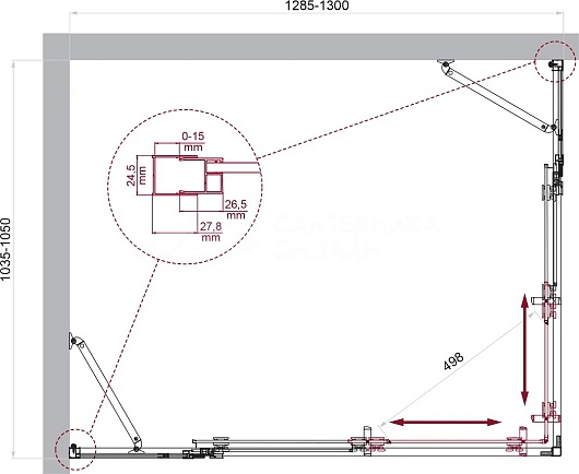 - Душевой уголок прямоугольный.
