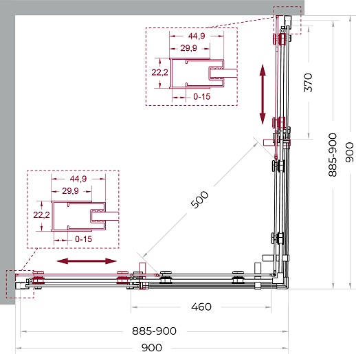 BelBagno Душевой уголок Marino MARINO-2-A-2-90-C-GM 90x90 профиль оружейная сталь стекло прозрачное
