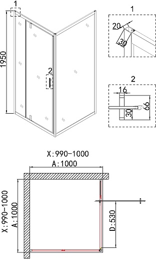 - Стекло: закаленное прозрачное, толщиной 6 мм.