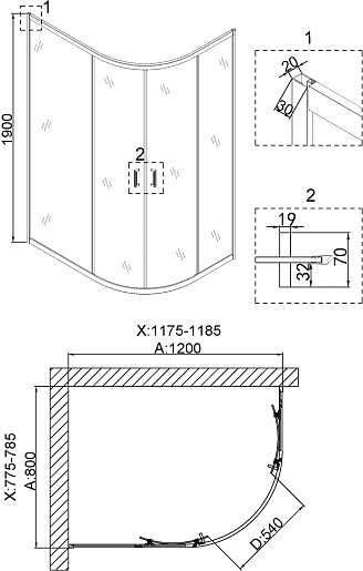 - Размер (ШxГxВ): 120x80x190 см.