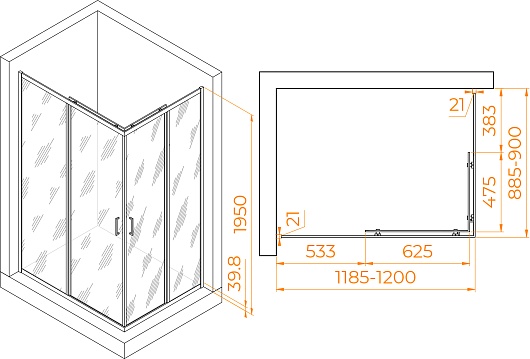 - Размеры с диапазоном регулировок (ГxШ): 885-900 x 1185-1200 мм.