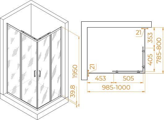 - Размеры с диапазоном регулировок (ГxШ): 785-800 x 985-1000 мм.