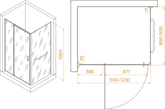 - Размеры с диапазоном регулировок (ГxШ): 1100-1230 x 890-905 мм.
