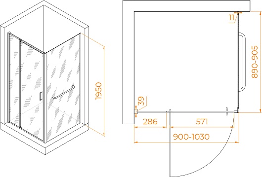 - Размер (ШxГxВ): 90x90x195 см.