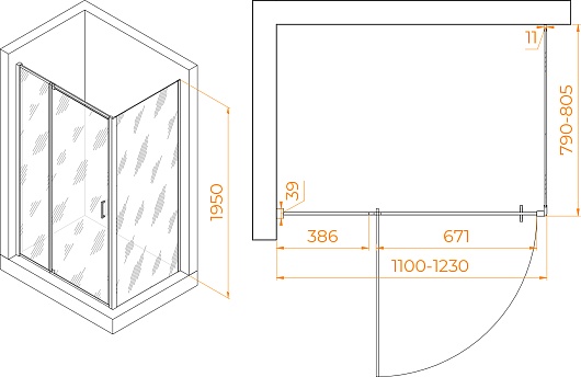 Душевой уголок RGW Passage PA-078 (PA-008 + Z-050-2) 110x80 профиль хром стекло прозрачное - арт. 350807818-11.
