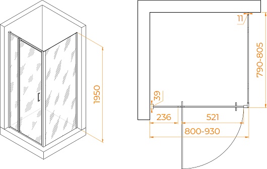 - Размеры с диапазоном регулировок (ГxШ): 800-930 x 790-805 мм.