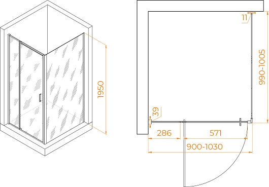 - Размеры с диапазоном регулировок (ШxГ): 900-1030 x 990-1005 мм.