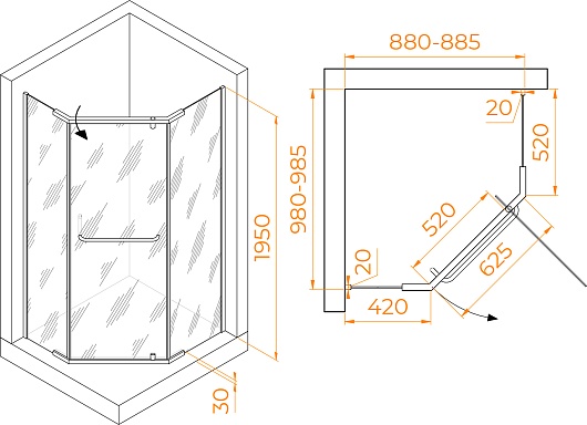 - Размеры с диапазоном регулировок (ГxШ): 880-885 x 980-985 мм.