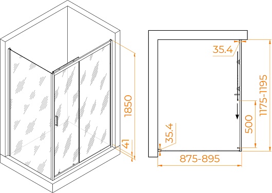 - Размеры с диапазоном регулировок (ГxШ): 875-895 x 1175-1195 мм.