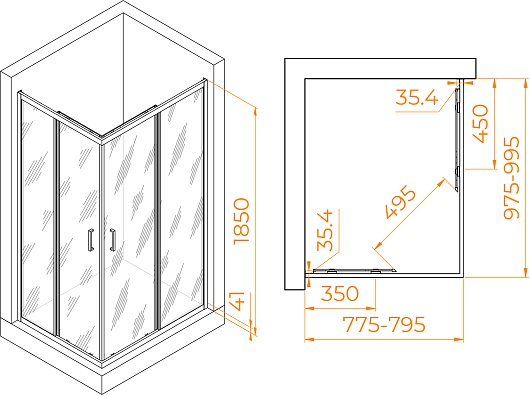 - Размеры с диапазоном регулировок (ГxШ): 775-795 x 975-995 мм.
