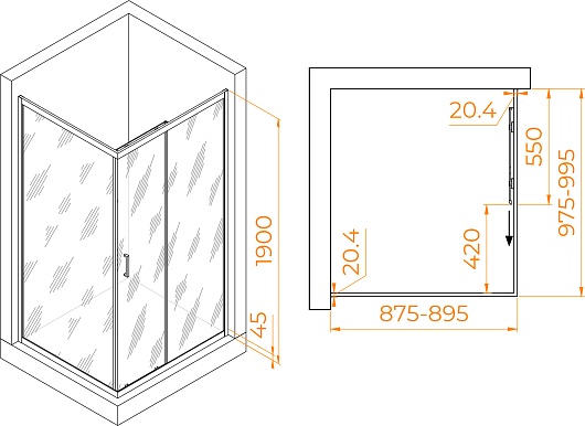 - Размеры с диапазоном регулировок (ГxШ): 875-895 x 975-995 мм.