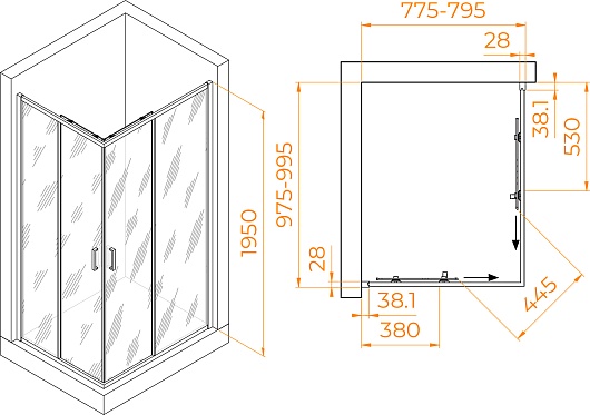 - Размеры с диапазоном регулировок (ГxШ): 775-795 x 975-995 мм.