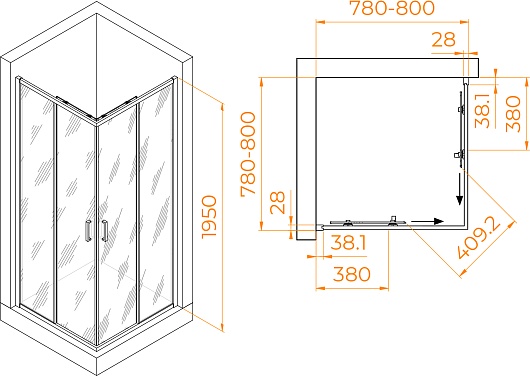 - Размер (ШxГxВ): 80x80x195 см.