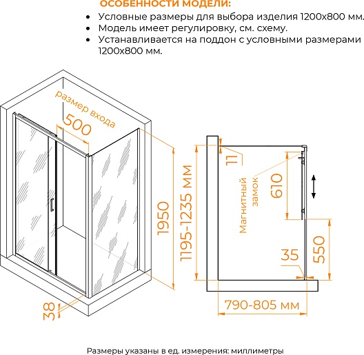 - Размеры с диапазоном регулировок (ШxГ): 1195-1235 x 790-805 мм.