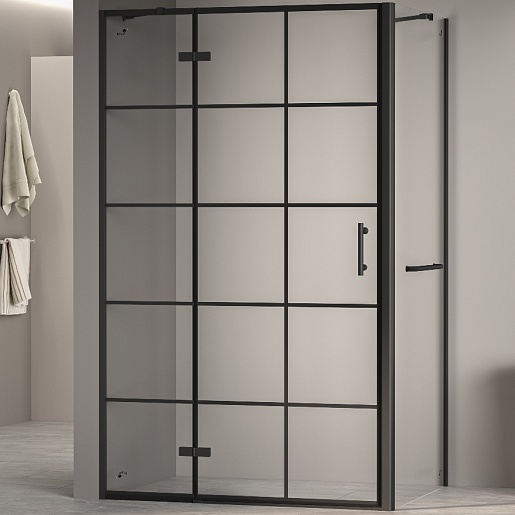 Душевой уголок RGW Passage PA-77-1B L (PA-07B L + Z-060-2B + держатель O-204B) 120x100 L профиль черный стекло прозрачное с рисунком - арт. 410877120-084L.