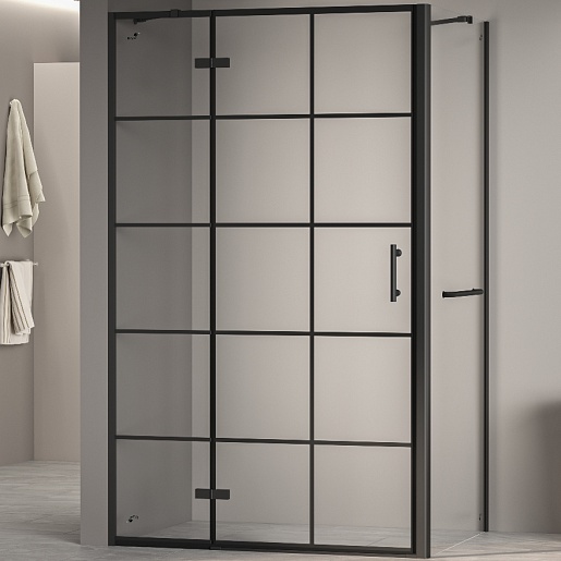 Душевой уголок RGW Passage PA-77-1B L (PA-07B L + Z-060-2B + держатель O-204B) 120x80 L профиль черный стекло прозрачное с рисунком - арт. 410877128-084L.
