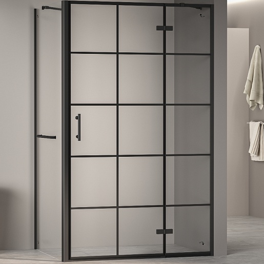 Душевой уголок RGW Passage PA-77-1B R (PA-07B R + Z-060-2B + держатель O-204B) 120x100 R профиль черный стекло прозрачное с рисунком - арт. 410877120-084R.