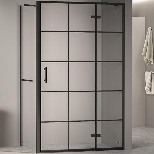 Душевой уголок RGW Passage PA-77-1B R (PA-07B R + Z-060-2B + держатель O-204B) 120x90 R профиль черный стекло прозрачное с рисунком - арт. 410877129-084R.