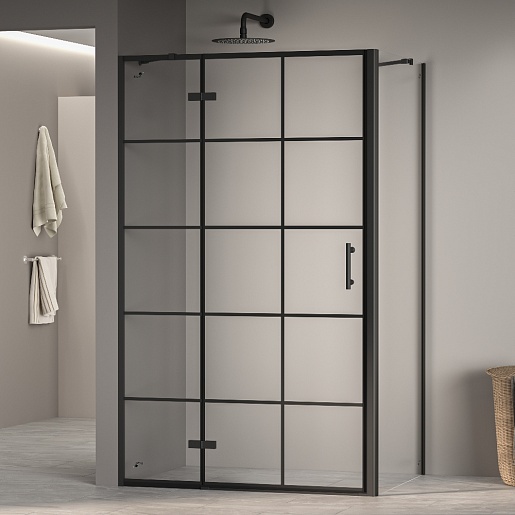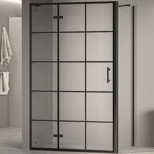 Душевой уголок RGW Passage PA-77B L (PA-07B L + Z-050-2B + держатель O-204B) 120x120 L профиль черный стекло прозрачное с рисунком - арт. 41087722-084L.