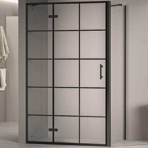 Душевой уголок RGW Passage PA-77B L (PA-07B L + Z-050-2B + держатель O-204B) 120x70 L профиль черный стекло прозрачное с рисунком - арт. 41087727-084L.
