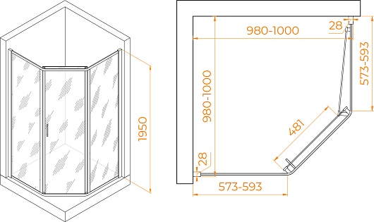 - Размер (ШxГxВ): 100x100x195 см.