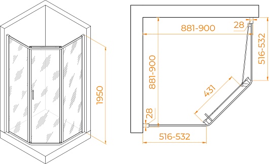 - Размер (ШxГxВ): 90x90x195 см.