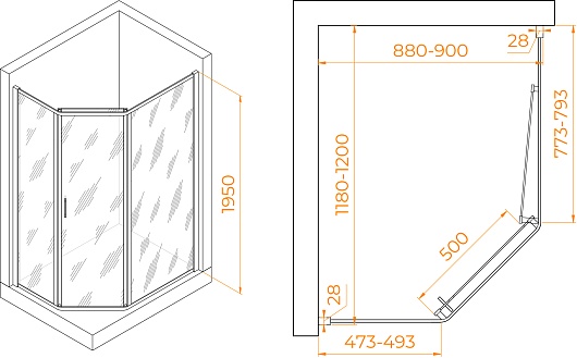 - Размеры с диапазоном регулировок (ШxГ): 880-900 x 1180-1200 мм.