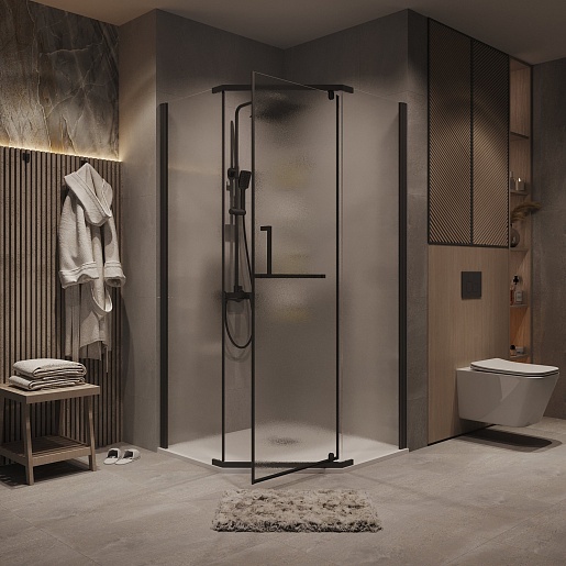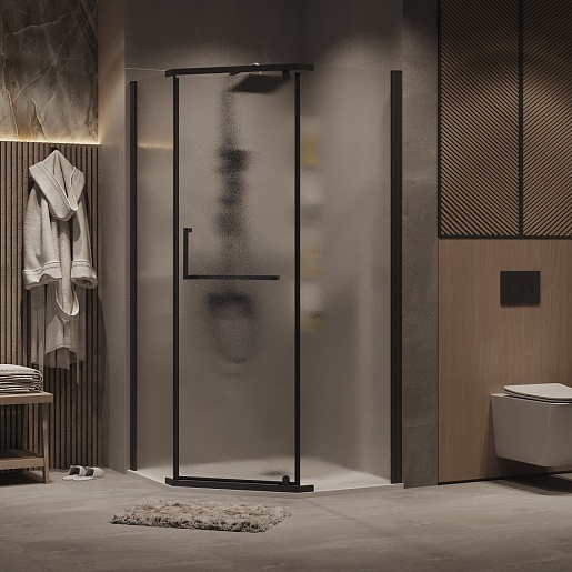 Душевой уголок Grossman Pragma 100x100x195 профиль черный матовый стекло шиншилла - арт. 302.K33.03.1010.21.02.