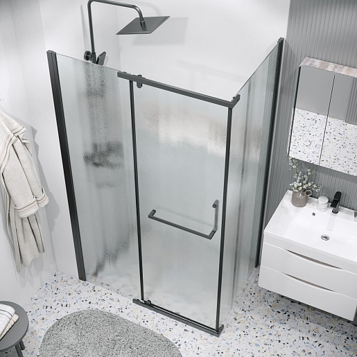 Душевой уголок Grossman Pragma 100x90x195 профиль черный матовый стекло шиншилла - арт. 120.K33.03.1090.21.02.