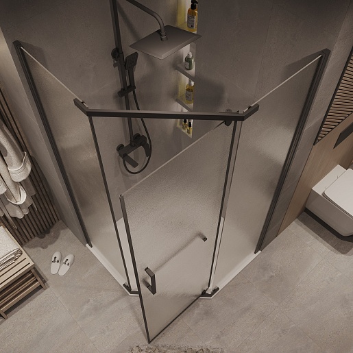 Душевой уголок Grossman Pragma 90x90x195 профиль черный матовый стекло шиншилла - арт. 302.K33.03.9090.21.02.