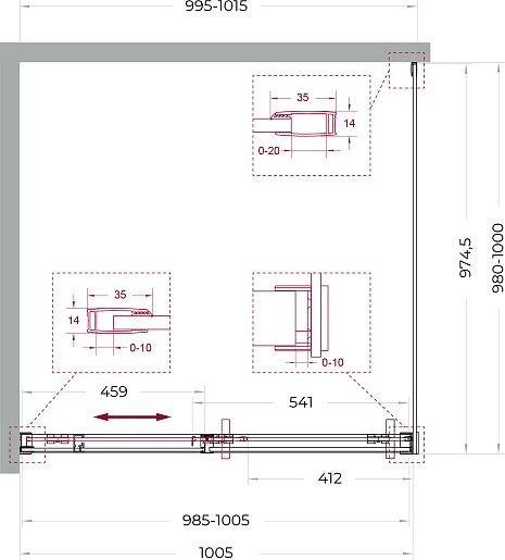 - Регулируемая ширина: от 98.5 до 100.5 см.