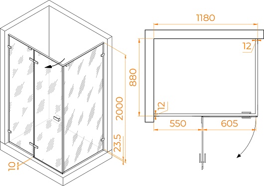 - Стекло: матовое, 8 мм.