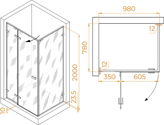 - Стекло: прозрачное, 8 мм.