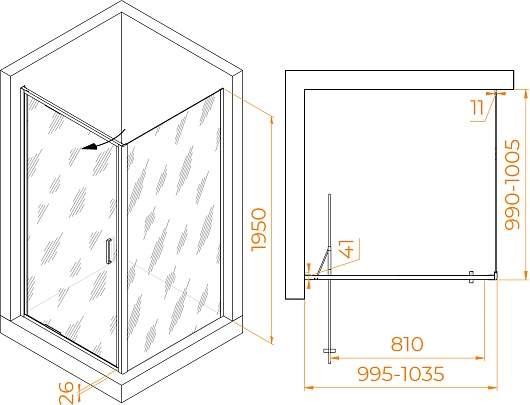 - Размеры с диапазоном регулировок (ШxГ): 995-1035 x 990-1005 мм.
