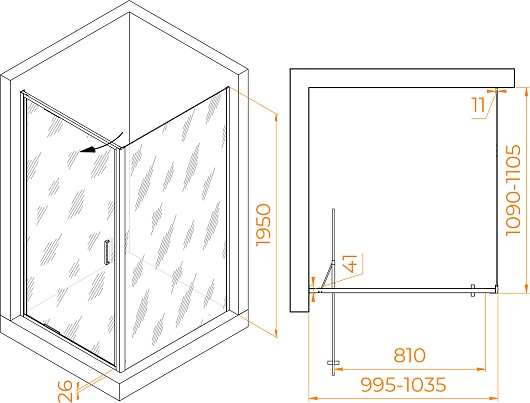 - Стекло: прозрачное, 8 мм.