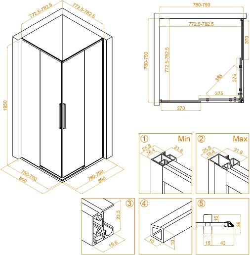 - Размер (ШxГxВ): 80x80x195 см.