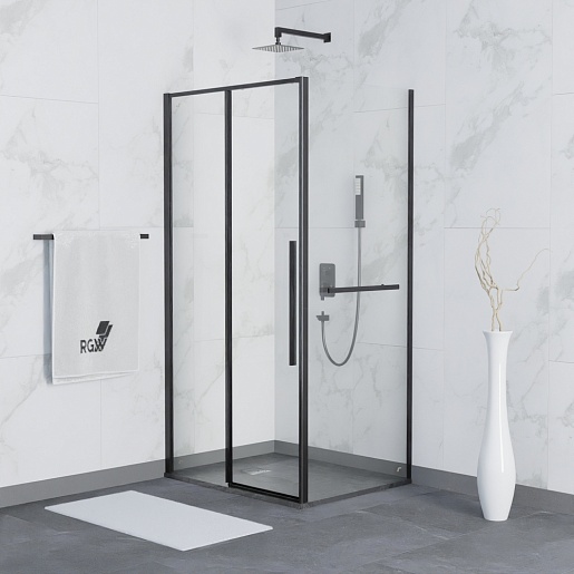 RGW Душевой уголок Stilvoll SV-42-1B (SV-12B + Z-060-2B) 140x90 профиль черный стекло прозрачное