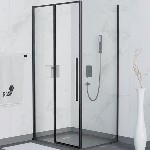 RGW Душевой уголок Stilvoll SV-42B (SV-12B + Z-050-2B) 140x100 профиль черный стекло прозрачное