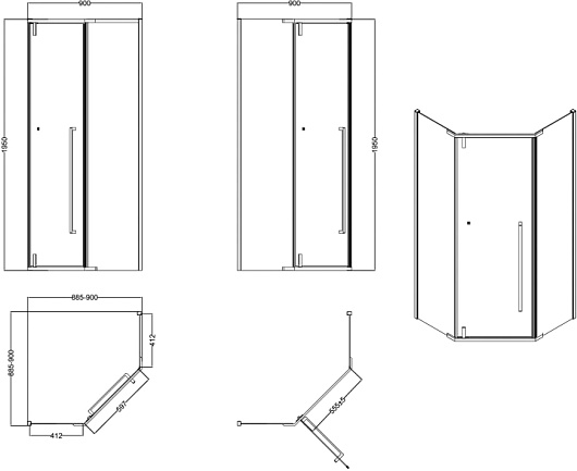 - Размер (ШxГxВ): 900x900x1950 мм.