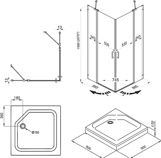 Triton Душевой уголок Тау-Блэк 90/90 Щ0000054038