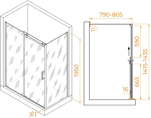 Душевой уголок RGW Tornado TO-44-1B (TO-14B + Z-060-2B) 140x80 профиль черный стекло прозрачное - арт. 020744148-14.
