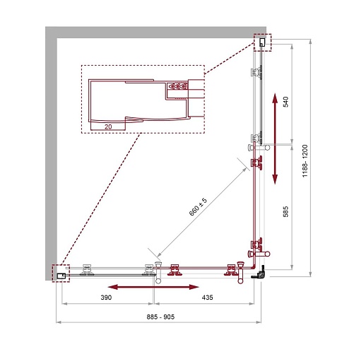 - Стекло 5 мм в дверях, 4 мм в неподвижных стенках.