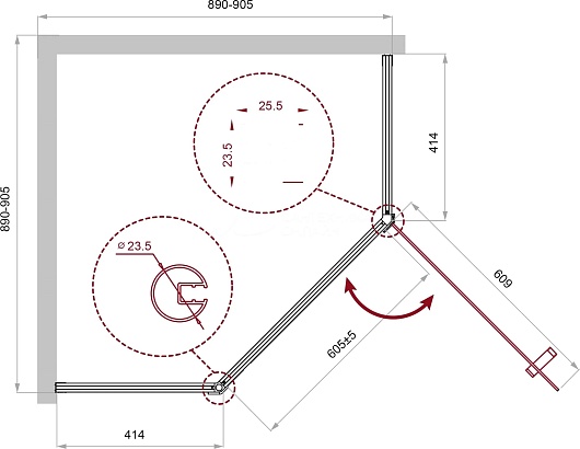 - Стекло 5 мм в двери, 4 мм в неподвижных стенках.