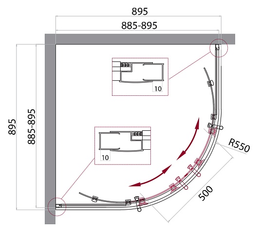 - Поддон: тип R (радиус 550), поддон приобретается отдельно.