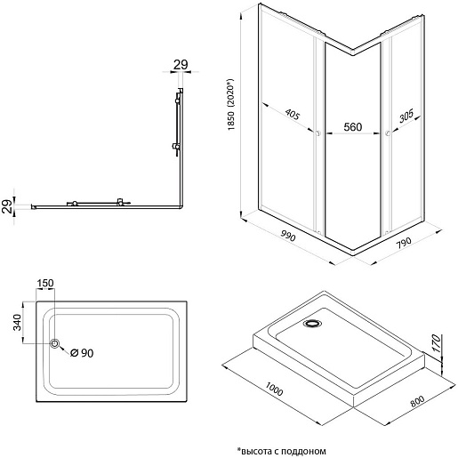 Triton Душевой уголок Вента Блэк 100/80 Щ0000057855