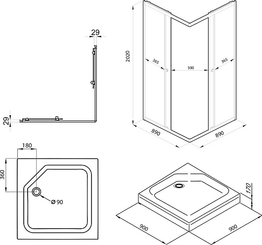 Triton Душевой уголок Вента Блэк 90/90 Щ0000054465