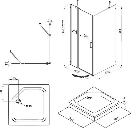 Triton Душевой уголок Йота-Блэк 90/90 Щ0000054037