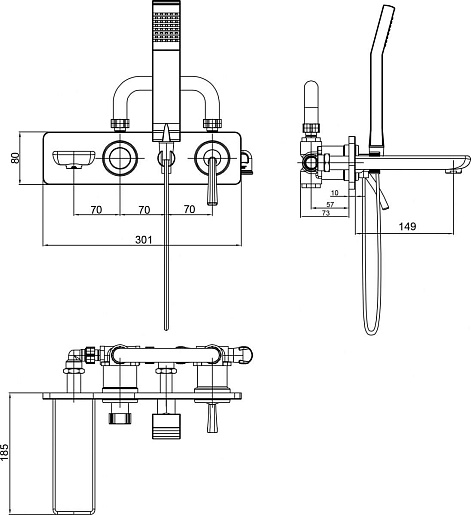 В комплекте: смеситель (внутренняя и внешняя часть), душевая лейка, душевой шланг.