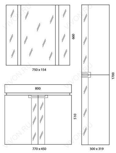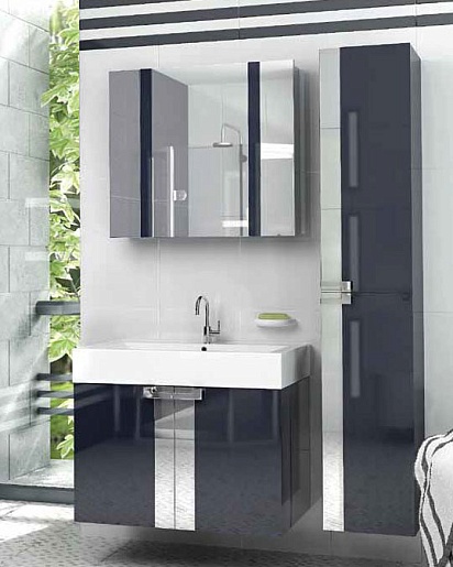 - Зеркало-шкаф Edelform Fresh 75 антрацит: распашной зеркальный фасад - 1 шт., вкладная стеклянная полка - 2 шт.